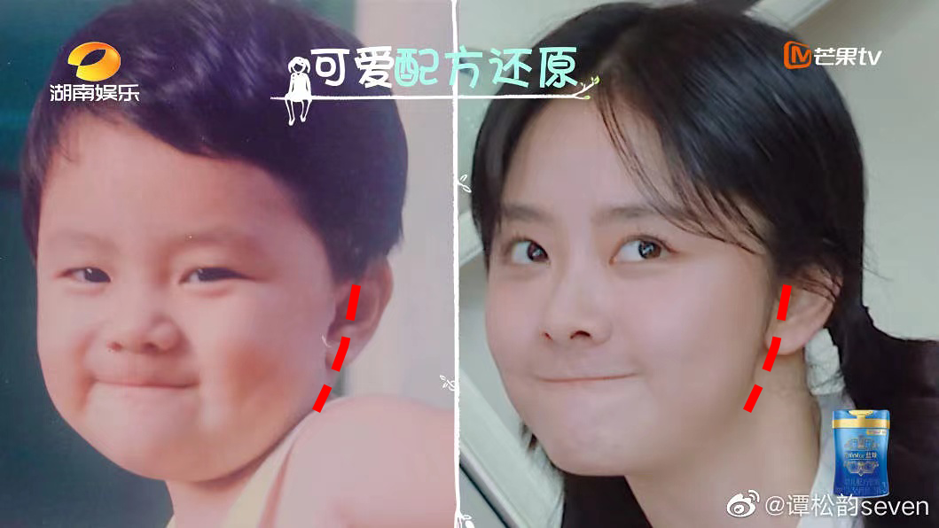 五官全是没有攻击性的圆线条,脸型、眼睛、鼻子圆溜溜,加上额头开阔饱满,苹果肌在线,看起来就像孩童时代就被按下了暂停键,嫩的掐出水。